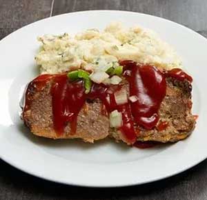 Two slices of tender, savory meatloaf, baked with care and topped with just the right sauce. It’s the kind of meal that fills you up and makes you feel at home. Available at select locations.